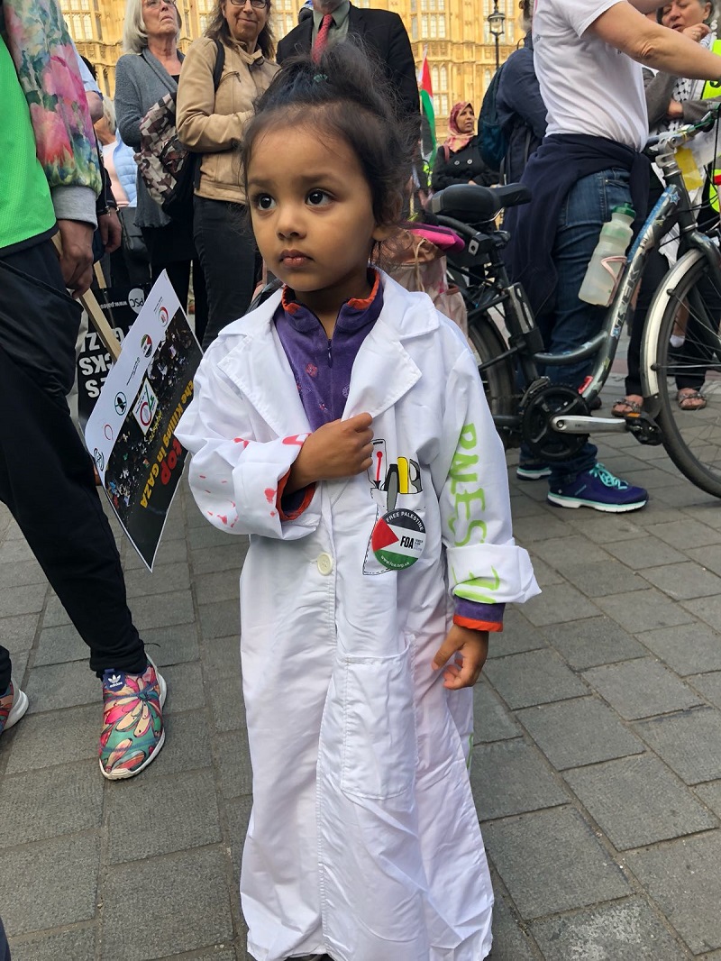 وأبدى المتظاهرون غضبهم لعدم صدور استنكار رسمي بريطاني لجريمة الاحتلال بحق المسعفة الفلسطينية رزان النجار (ارتقت شهيدة على حدود غزة، أثناء قيامها بواجبها الإنساني)، منددين بزيارة نتنياهو، المقررة غدا الأربعاء، للمملكة المتحدة.