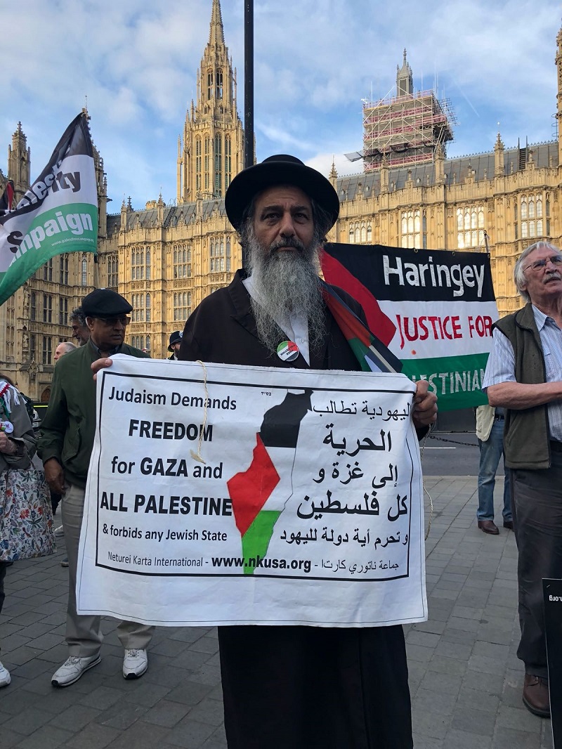 وأعرب رئيس المنتدى الفلسطيني في بريطانيا حافظ الكرمي، عن امتنانه لحضور هذا العدد الكبير من النشطاء والمتضامنين، رغم كثرة المظاهرات مؤخرا، وظروف صيام المسلمين في بريطانيا، موجها رسالة شديدة لرئيسة الحكومة البريطانية تيرزا ماي، "بأنها ستصافح غدا يدا ملطخة بدماء الممرضين والصحفيين ناهيك عن الأطفال والأبرياء".