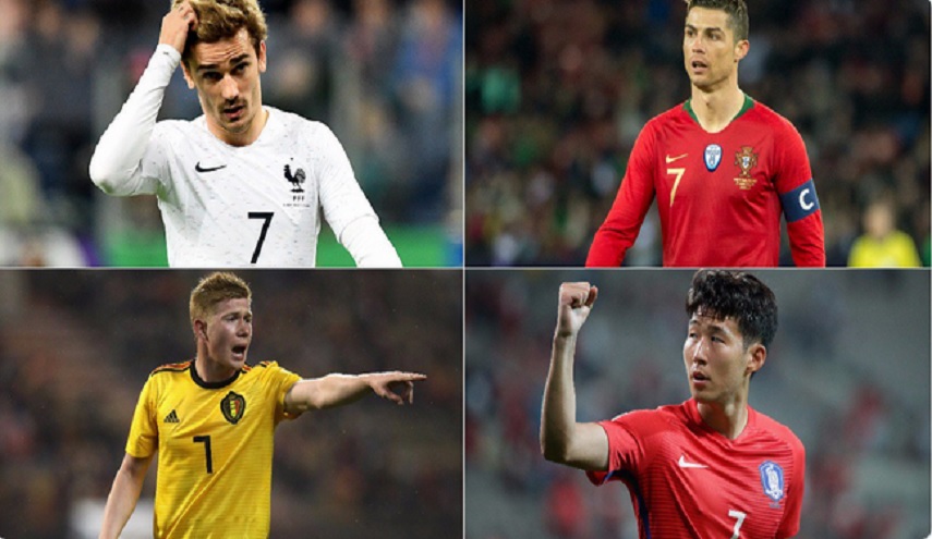 ونشر الموقع الرسمي للاتحاد الدولي لكرة القدم "فيفا" 4 صور للاعبين تتواجد منتخباتهم في كأس العالم ويحملون الرقم "7" مع فرقهم.