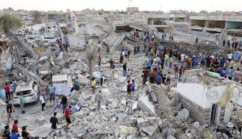 حيث كشف النهار ما لم يتم التمكن من رؤيته ليلة امس من دمار نتيجة انفجار كدس للمتفجرات اوقع اضرارا بليغة في المنازل والممتلكات فضلا عن سقوط شهيدين واصابة 87 آخرين .