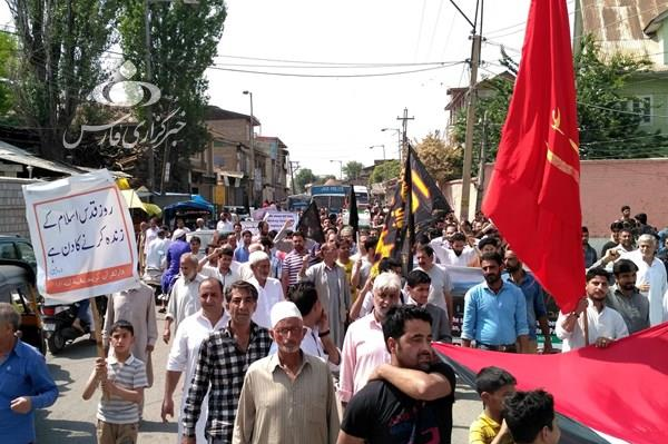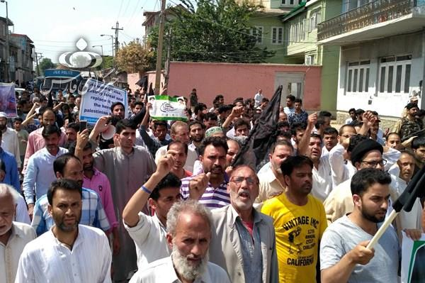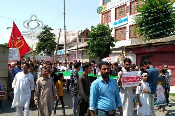 وجابت التظاهرة شوارع مدينتي سرينغار وماغام عقب صلاة الجمعة، تقدمها علماء الدين، ولافتات "الموت لأمريكا" و "الموت لإسرائيل".