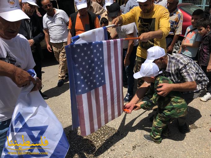 كما أحرق المشاركون العَلَمَين الإسرائيلي والأمريكي استنكارًا لجرائم الاحتلال الإسرائيلي بحق شعبنا ولانحياز الولايات المتحدة التام إلى الاحتلال بسياساتها وقراراتها.