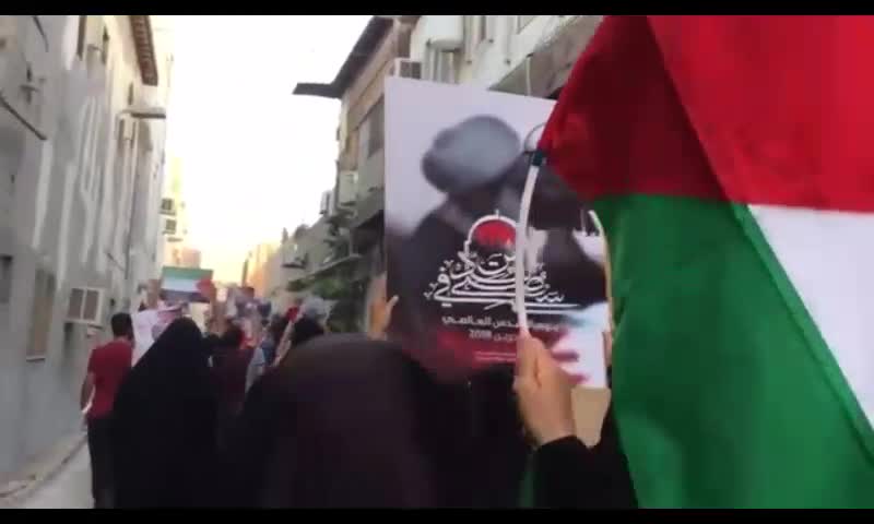 وسجّل المواطنون البحرينيون فجر الجمعة حضورا ناشطا في تظاهرات غاضبة رافعين أعلام فلسطين وصور الإمام الخميني والشعارات الثورية التي دعت إلى إسقاط آل خليفة وآل سعود و"الموت لإسرائيل".