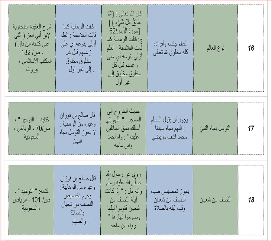 يتضح لكل من له ادنى دقة و ملاحظة لهذه القائمة مدى الفرق بين ما عليه المسلمون و ما عليه الوهابية المبتدعة ...و لكن للائحة تتمة نوافيكم بها لاحقا .