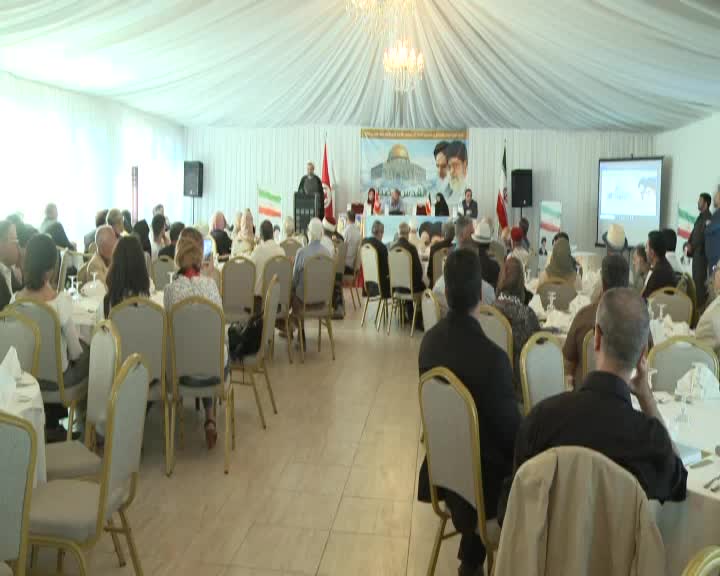 نظمت سفارة الجمهورية الاسلامية الايرانية بتونس ندوة حوارية بمناسة يوم القدس العالمي تناولت رؤى الامام الخميني رضوان الله عليه بخصوص القضية الفلسطينية واهمية الوحدة الاسلامية للوقوف بوجه المؤامرات الصهيونية ، وقد حضرت الندوة كريمة الإمام الخميني(رض)