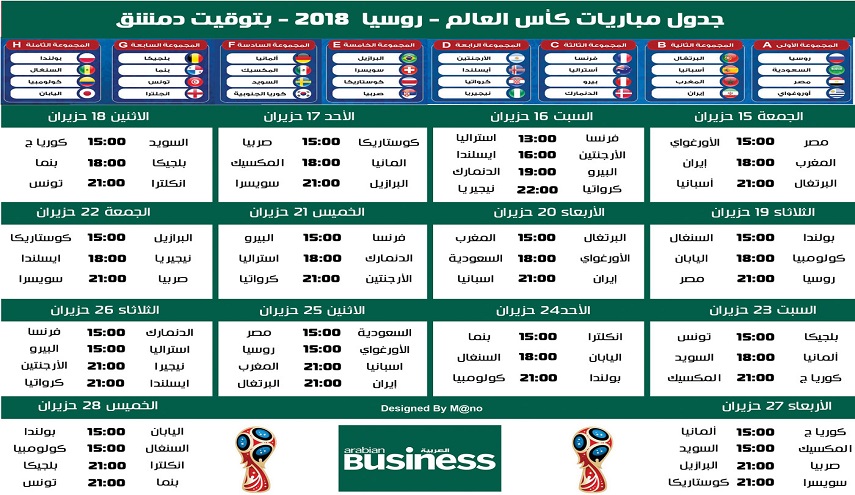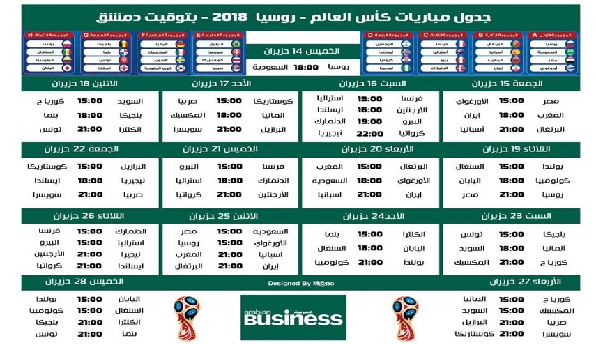 ملحوظة: مواعيد المباريات جميعها بحسب توقيت دمشق (+ 3 غرينتش).