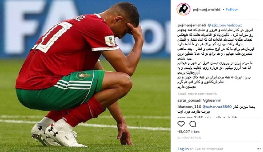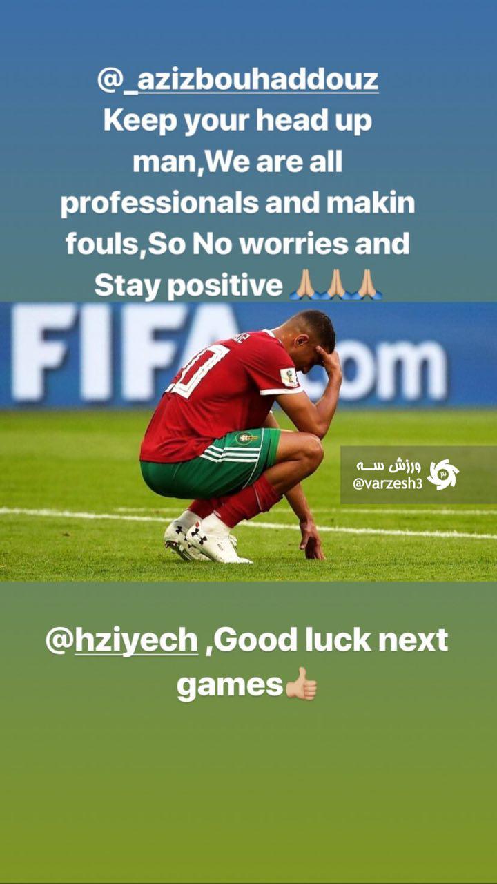 وعلق لاعب المنتخب الايراني الشهير "علي رضا جهانبخش" على صورة بوحدوز في انستغرام: «إرفع رأسك ايها الرجل!.. فكلنا محترفون وأحيانا نرتكب اخطاء.. لاتحزن وكن متفائلا..».
