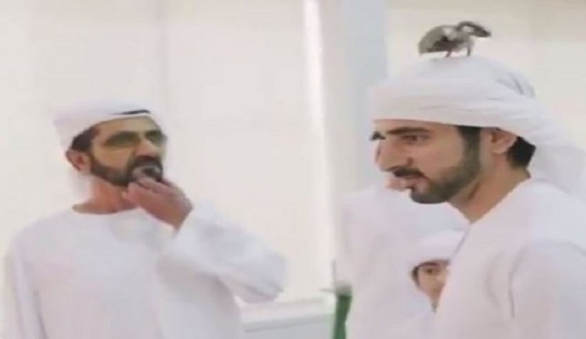 إلا أن الغريب في الفيديو أن الطير الذي راح يتنقل طائراً بين عدة أشخاص كانوا يرافقون حاكم دبي وولي عهده، لم يختر إلا رأس “الشيخين” فقط، حتى إن بعض المغردين اعتبر أن هذا الطير لا يحط إلا على رؤوس الأمراء.