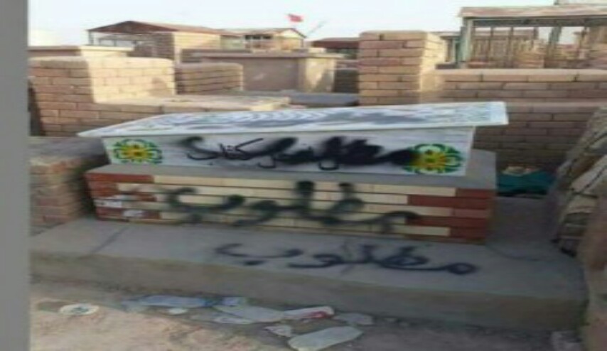 حيث تناقل ناشطون بمزيد من السخرية والاستهجان على مواقع التواصل صورة لشاهد قبر في مقبرة وادي السلام في مدينة النجف وهي الاكبر في العالم وقد خط عليه بالحبر الاسود ” مطلوب ” .