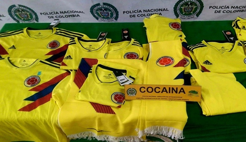 وأضافت أنه مع فتح أمن المطار للطرد وجد فيه 14 قميصا تحاكي قمصان المنتخب الكولومبي المشارك في مونديال روسيا، وتحمل في نسيجها نحو 5 كيلوغرامات من مادة الكوكايين، تم تشبيعها بها بنقعها في محلول احتوى على الكوكايين ومواد كيميائية ثبتته على نسيج القمصان قبل تجفيفها، ليبقى مسحوق الكوكايين في القمصان وتنشف باقي السوائل.