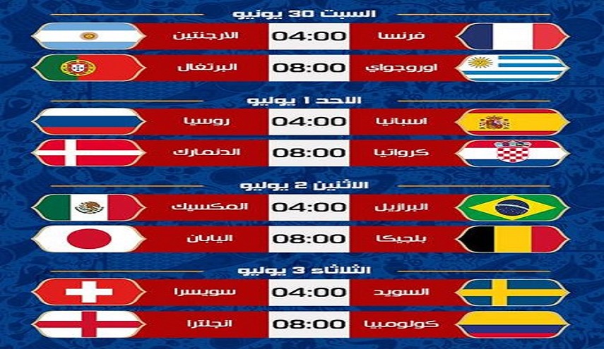 مواعيد مواجهات دور الـ16 من كأس العالم 2018