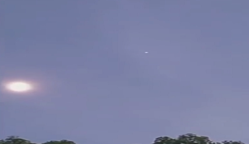 ويمكننا الملاحظة، في الفيديو المتداول، كيف يحوم الجسمان في السماء، حيث خلت من الغيوم.