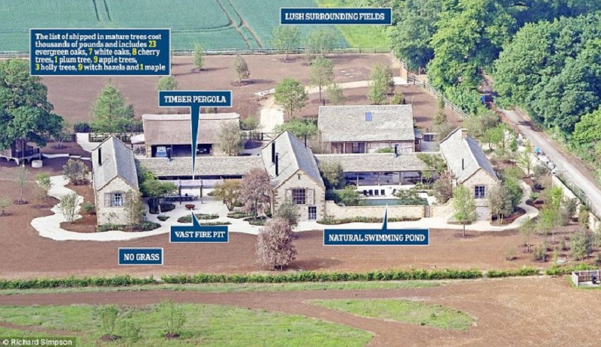 وتظهر الصور الجوية التي تم التقاطها أن الأرض التي تحيط بالقصر خضراء خصبة؛ ولكنها فارغة تمامًا، وطبقًا للتقارير فإن قائمة المزروعات لقرية نجم “ريال مدريد” الإسباني السابق ستتضمن عددًا كبيرًا من الأشجار الناضجة منها 23 شجرة بلوط دائمة الخضرة وسبع أشجار بلوط بيضاء وثماني أشجار كرز وشجرة برقوق وتسع أشجار تفاح وثلاث أشجار مقدسة وتسع أشجار بندق وخشب القيقب.