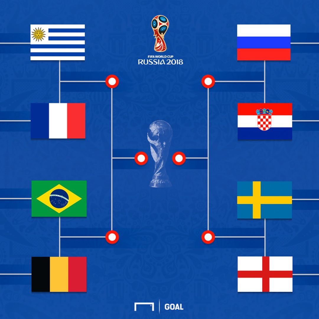 ويواجه منتخب إنجلترا نظيره السويد في الدور ربع النهائي بطولة كأس العالم، في حين تأهل أيضا لهذا الدور منتخبات (البرازيل، أوروغواي، فرنسا، روسيا، كرواتيا، بلجيكا).