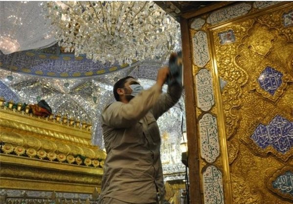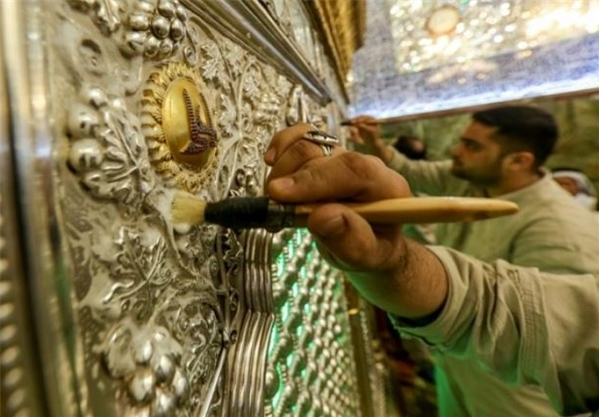 وخلال هذه العملية تم صقل صفائح الذهب والفضة في ضريح الامام علي بن ابي طالب بالاضافة الى البوابات وتثبيت دعائمها.