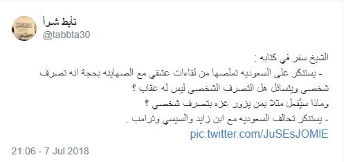وتحدث سفر الحوالي (68 عاما) عن المليارات التي أنفقتها السعودية ودول الخليج (الفارسي) على الولايات المتحدة، خلال زيارة ترامب إلى الرياض منتصف العام الماضي.