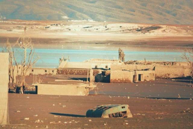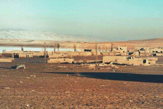 وظهرت هذه المدينة الان على السطح من جديد بعد انحسار مياه بحيرة السد.