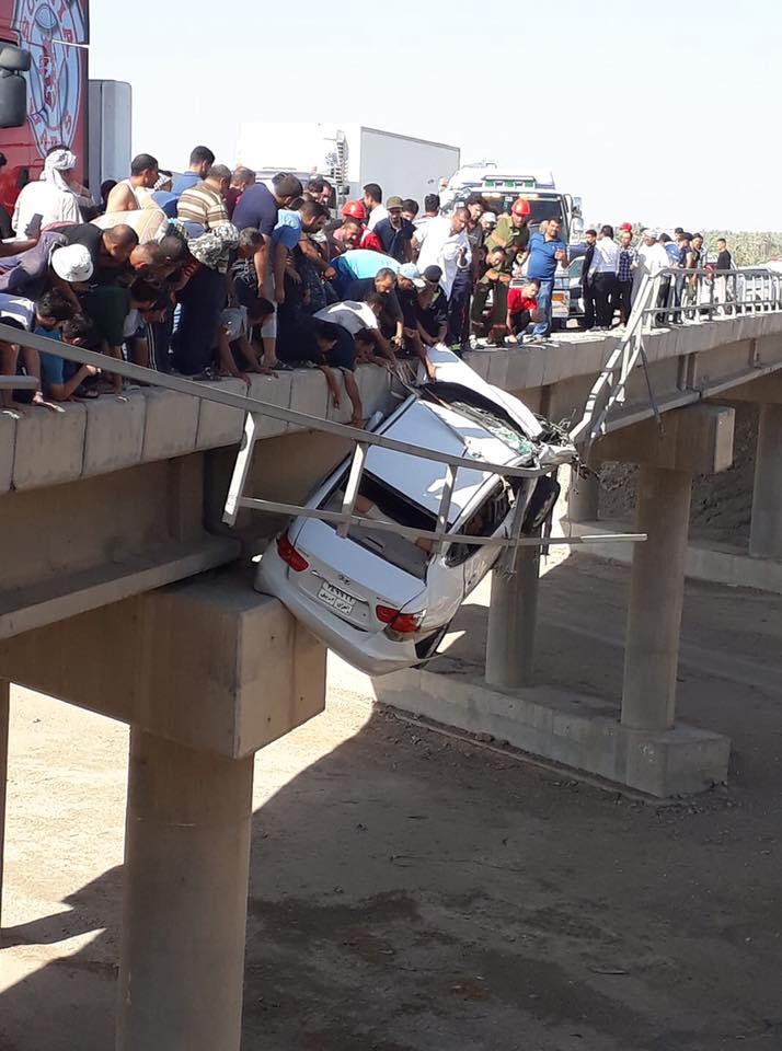 لكن أصحاب السيارات سارعوا بانتشال السيارة قبل وقوعها من اعلى الجسر وتمكنوا من انقاذ جميع ركابها.