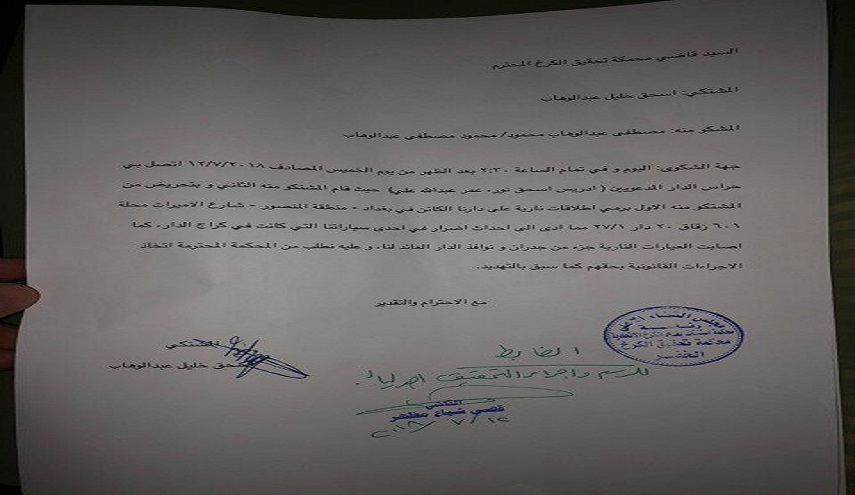 وتابع بنية انه "تم تقديم طلب الى وزير الداخلية لاجراء تحقيق ورفع دعوى قضائية لالقاء القبض على المنفذ وتحويله الى القضاء لاجراء اللازم"، لافتا الى ان "هذه المحاولة هي الثالثة من قبلهم بعد اتهامي بدعوى كيدية (4 ارهاب)".