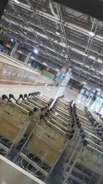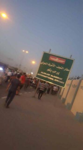 العراق - الكوثر: تداول ناشطون على مواقع التواصل الاجتماعي عددا من الصور التي تبين اقتحام مطار النجف الأشرف من قبل المتظاهرين، كما توضح انتشارهم في اغلب مرافق المطار بما فيها المدرج.