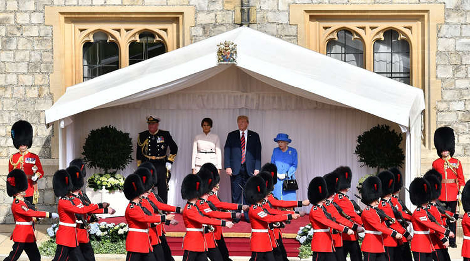 ووصل الرئيس الأمريكي دونالد ترامب وزوجته ميلانيا الجمعة الماضية (13 يوليو الجاري) إلى قصر ويندزور للقاء الملكة البريطانية اليزابيث الثانية، ليصبح ترامب الرئيس الأمريكي الـ12 الذي تعرفت عليه الملكة شخصيا. وفيما بعد وصف ترامب اليزابيث الثانية بأنها "امرأة رائعة".