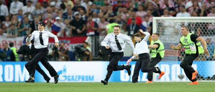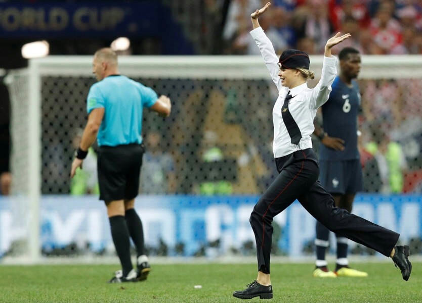 ومن بين الأشخاص الذين اقتحموا الملعب، نادزدا تولوكونيكوفا، البالغة من العمر 28 عاما، التي تم اعتقالها عام 2012 خلال مشاركتها في احتجاجات ضد الرئيس الروسي فلاديمير بوتين في كاتدرائية موسكو.