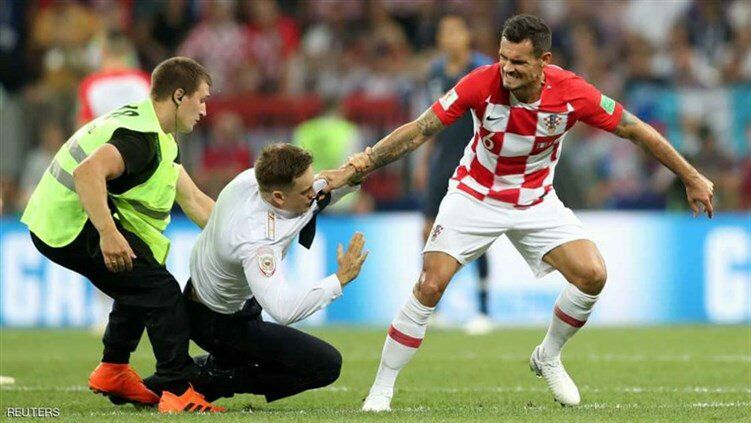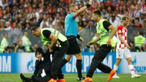 ونجح لاعب كرواتيا ديان لوفرين في الإمساك بأحد المقتحمين، بينما صافح الفرنسي كيليان إمبابي إحدى الفتيات اللاتي شاركن في عملية الاقتحام.
