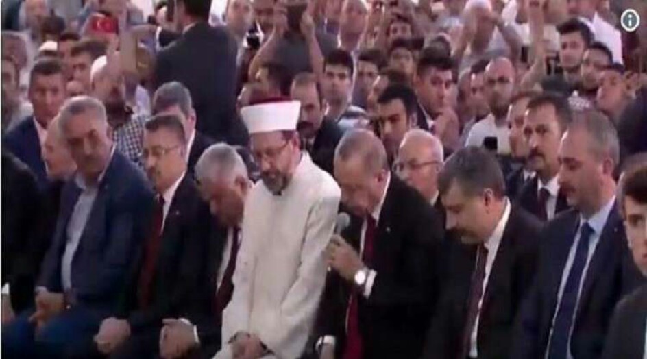 ونشر موقع "ترك برس" مقطع فيديو يظهر خلاله أردوغان وهو يتلو آيات من القرآن الكريم من سورة "آل عمران" داخل أحد المساجد.