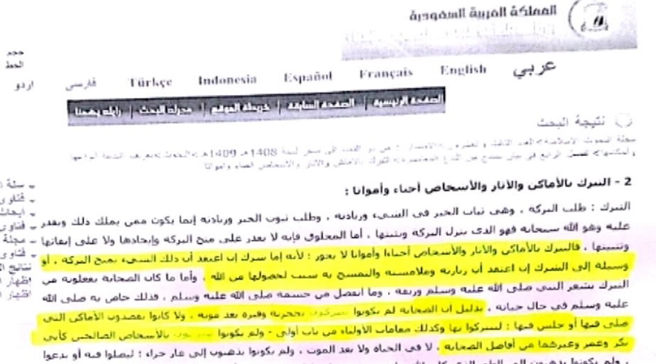 و طلب من المشاهدين زيارة موقع "المملكة العربية السعودية" لمشاهدة أحكام التبرك بقبور الأولياء.