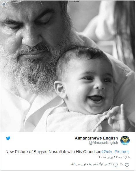 بينما قال أوفير جندلمان، المتحدث باسم رئيس الوزراء الإسرائيلي: "انتشرت صورة حسن نصر الله برفقة حفيده بهدف إظهاره بأنه جد حنون".