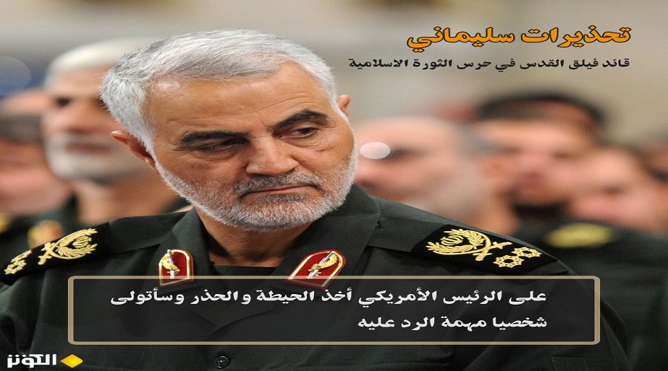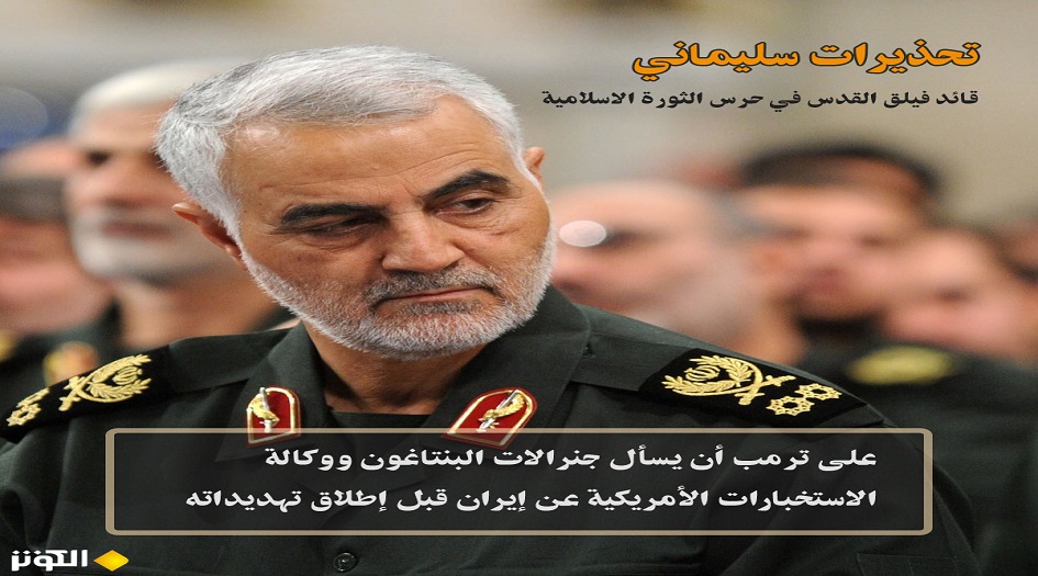 ايران_الكوثر:وجه قائد فيلق قدس بالحرس الثوري الاسلامي اللواء قاسم سليماني رسالة الى الرئيس الاميركي دونالد ترامب وحذره فيها من تهديد الجمهورية الاسلامية الايرانية.