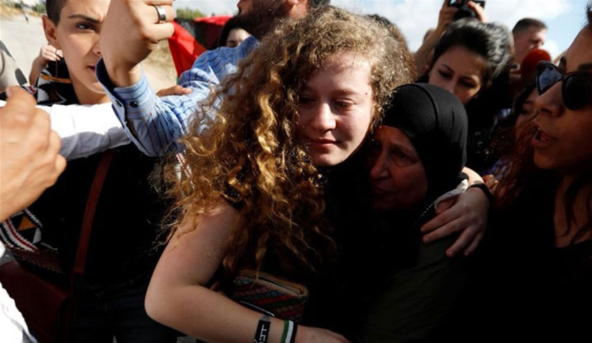 وقد اعتقلت القوات الصهيونية التميمي البالغ عمرها 17 عاما في 19 ديسمبر العام الماضي، بعد انتشار مقطع فيديو ظهرت فيه مع ابنة عمها نور التميمي، وهما تقتربان من جنديين صهيونيين يستندان إلى جدار في باحة ببلدة النبي صالح الفلسطينية، وتطلبان منهما مغادرة المكان وتقومان بركلهما وصفعهما.
