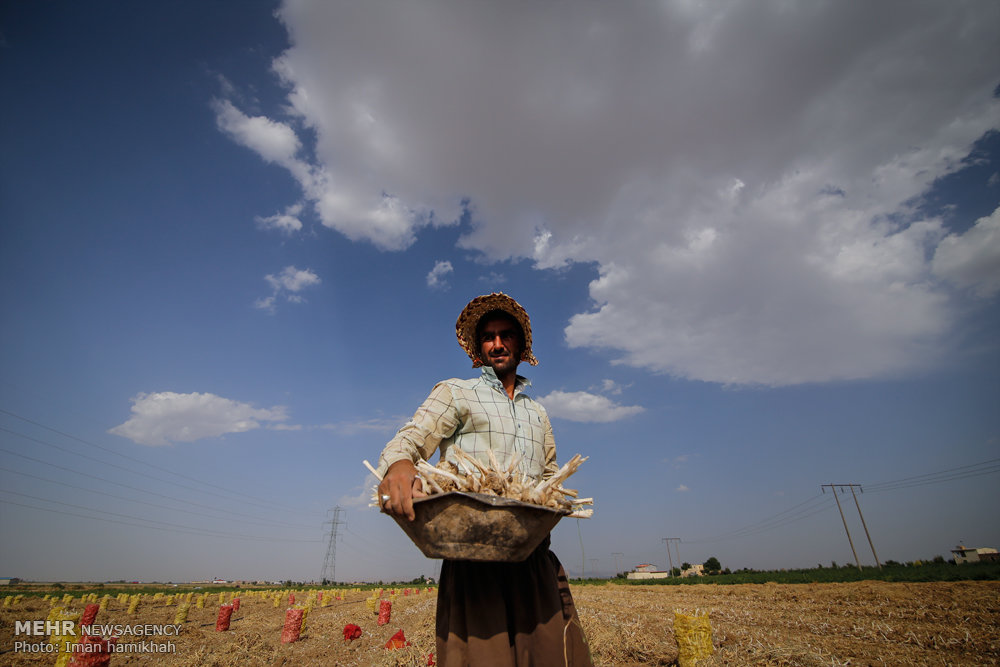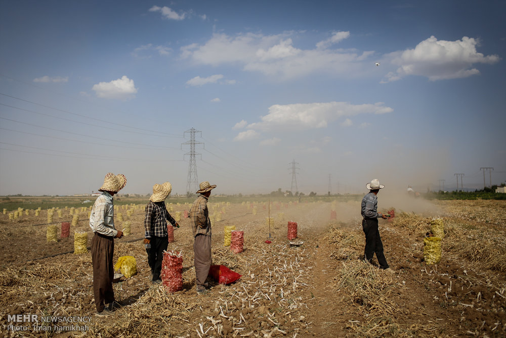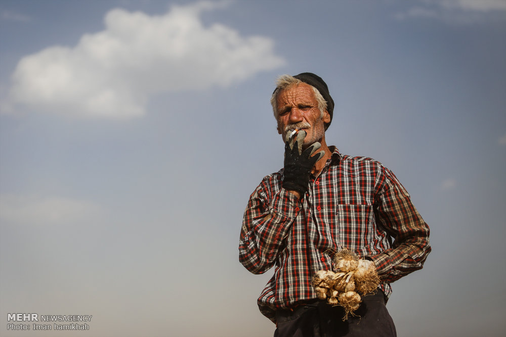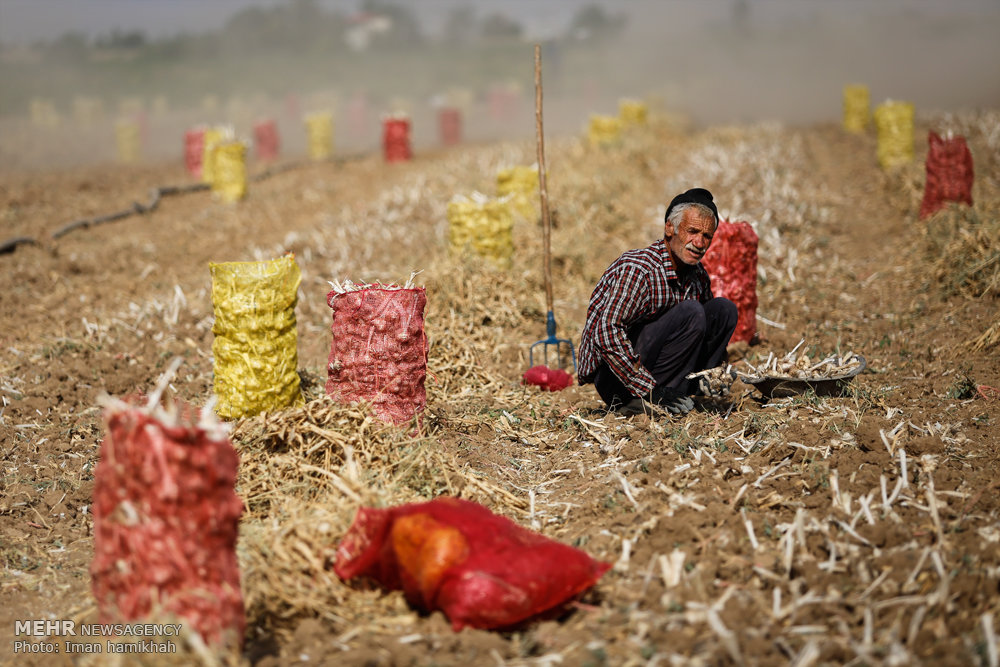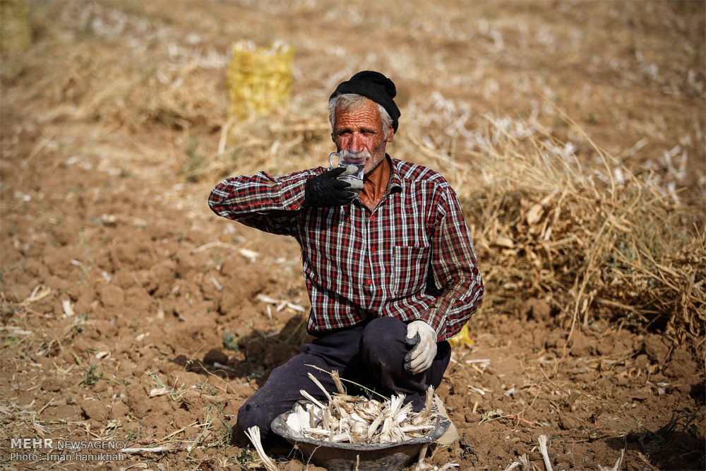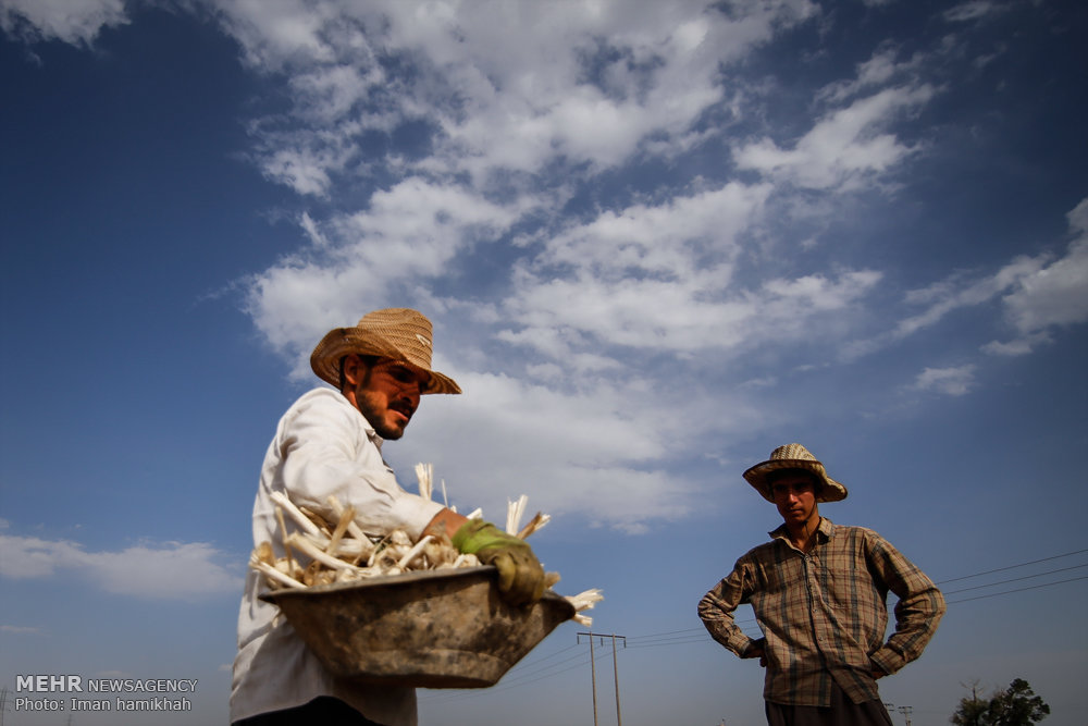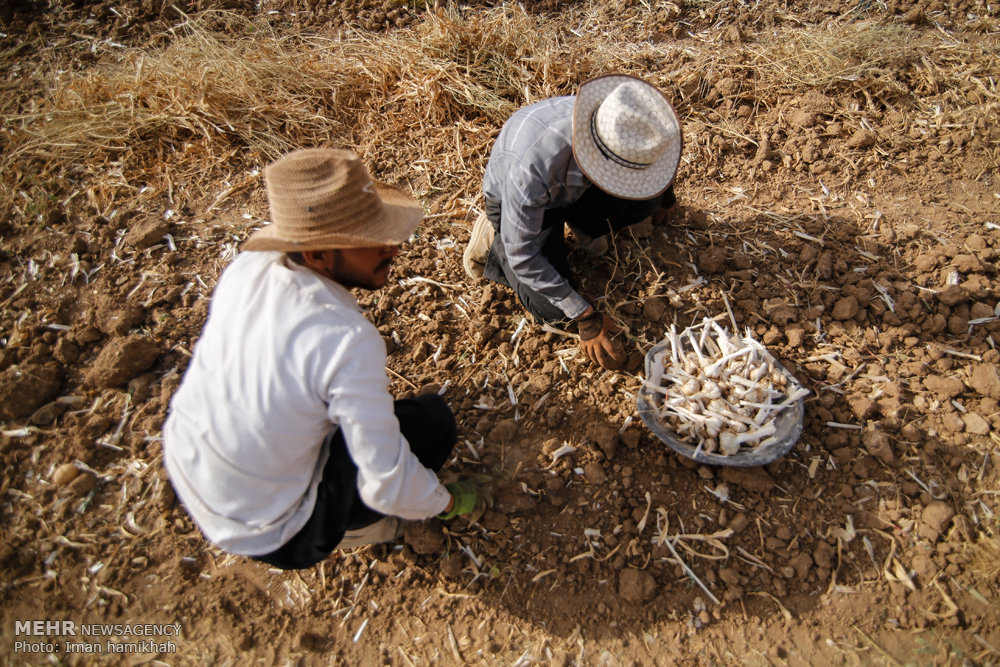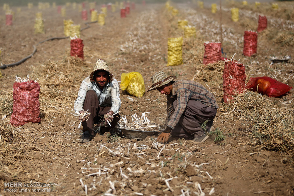 بالصور.. قطف ثمار الثوم في مزارع همدان