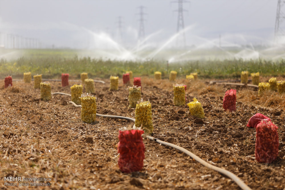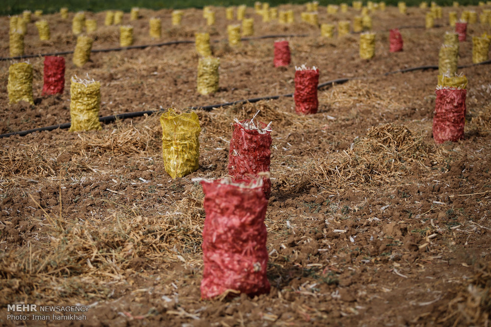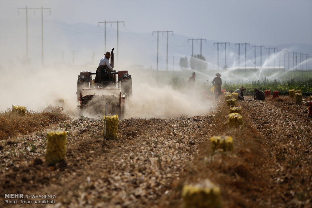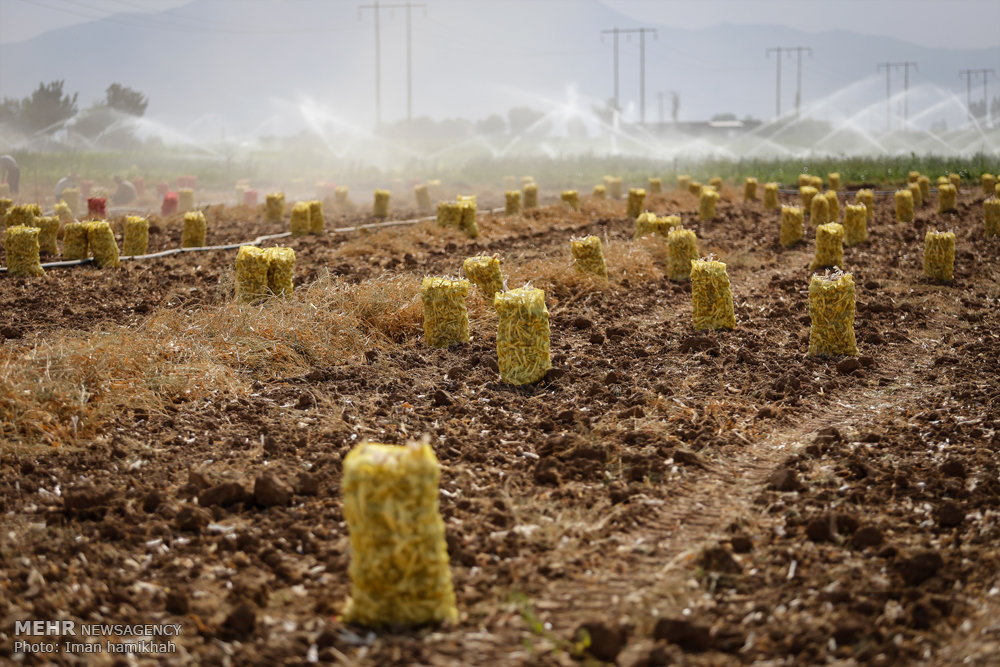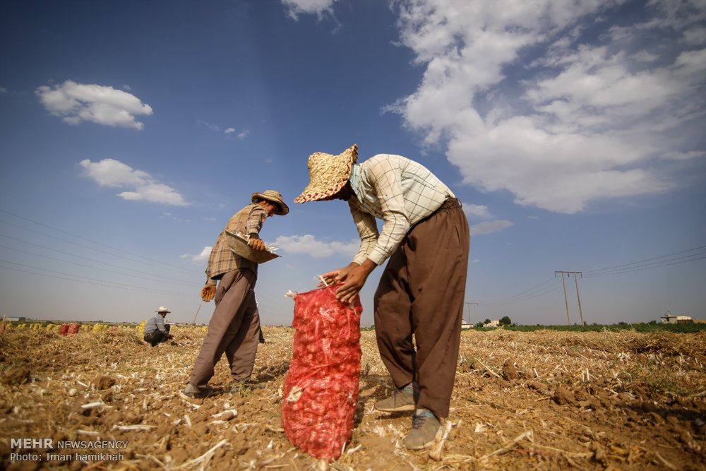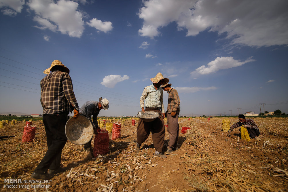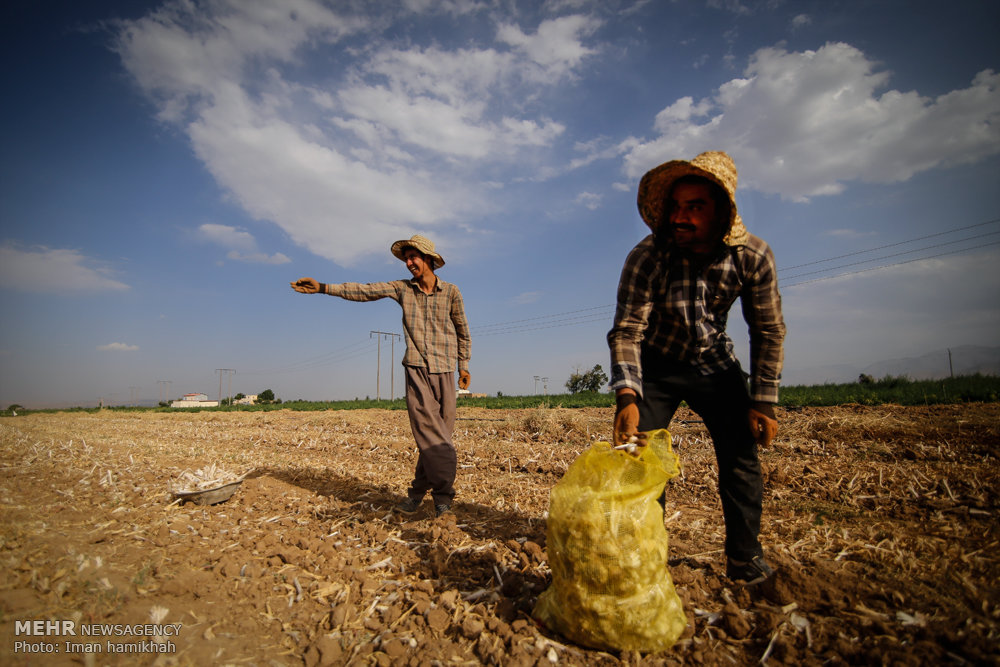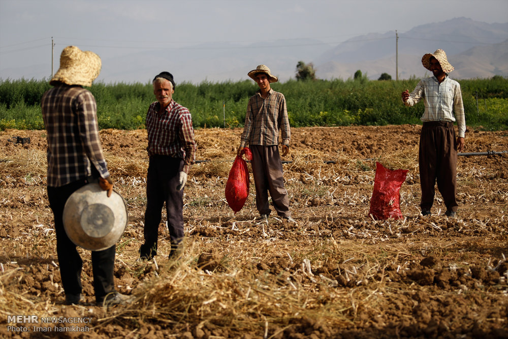 بالصور.. قطف ثمار الثوم في مزارع همدان