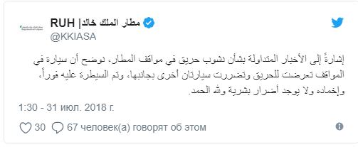 وتداولت مواقع التواصل الاجتماعي شريط فيديو يظهر اندلاع حريق في موقف مطار الملك خالد بالعاصمة الرياض.