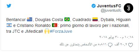 وبجانب رونالدو، تواجد في تدريبات اليوفي، الأرجنتينيان باولو ديبالا، وجونزالو هيجواين، والبرازيلي دوجلاس كوستا، والأوروجواياني رودريجو بينتانكور، والكولومبي خوان كوادرادو.