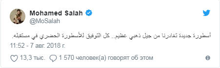 كتب صلاح: "أسطورة جديدة تغادرنا من جيل ذهبي عظيم.. كل التوفيق للأسطورة الحضري في مستقبله".