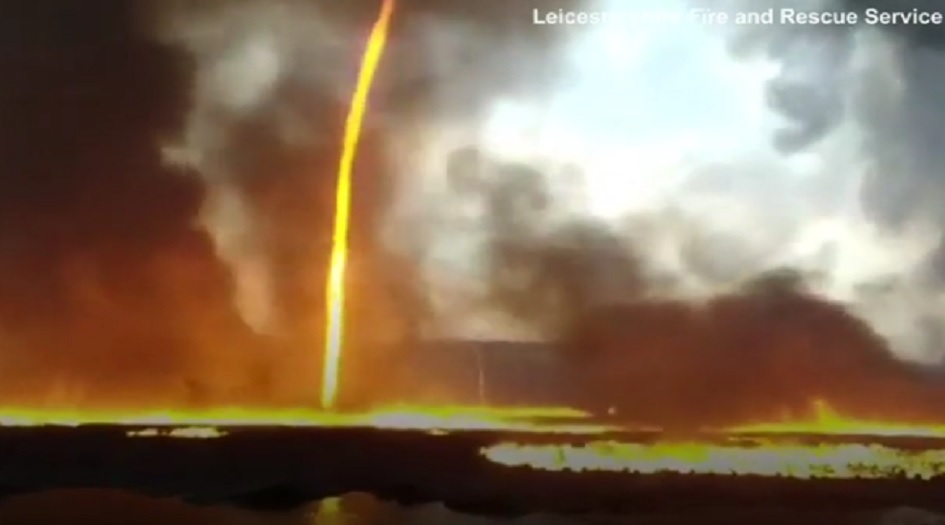 وكان الفريق يكافح نيران مشتعلة عند أحد المصانع عندما حدثت الظاهرة، وتحدث عندما تجتمع النار بدوامة هواء أو إعصار.