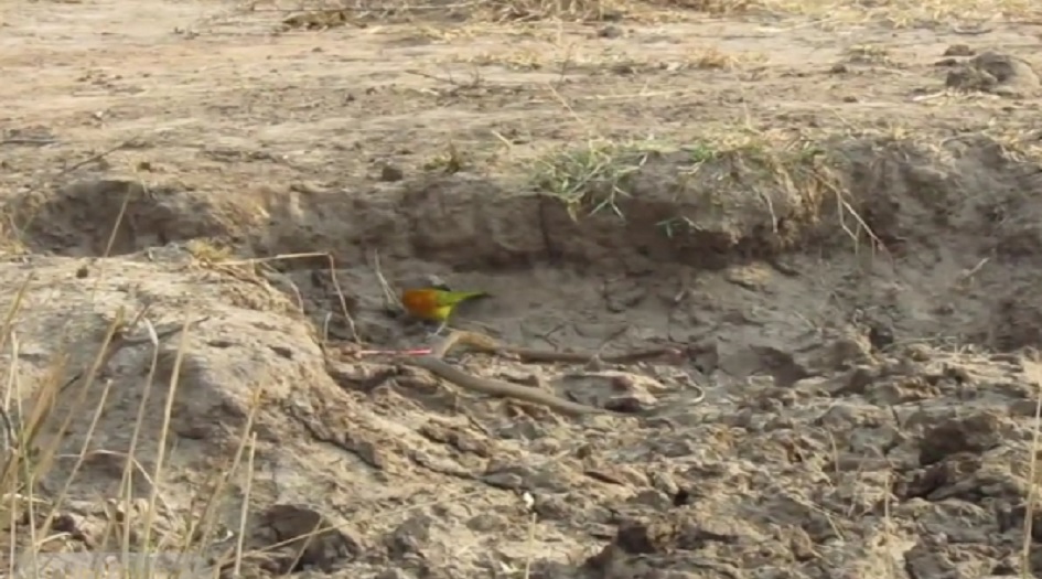 ونشرت السائحة الفيديو الذي صورته على قناة Kruger Sightings في يوتيوب حيث يظهر في الفيديو، ثعبان من نوع Rhamphiophis oxyrhynchus في حفرة، وهو يتعرض للهجوم من طائر إفريقي من فصيلة العصافير.