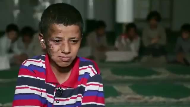 احد الطلاب الناجين من المجزرة الدموية التي قام بها العدوان الظالم السعودي على حافلة تحمل مجموعة من الطلاب وهم في طريقهم الى جامع الامام الهادي لزيارة شهداء العدوان السعودي لكي يعاهدونهم انهم ماضون على نفس الطريق حتى يحرروا اليمن من دنس ال سعود، شاهد البراءة في وجه هذا الطفل المعصوم وهو يحكي لنا ما عاناه من مجزرة ال سعود.