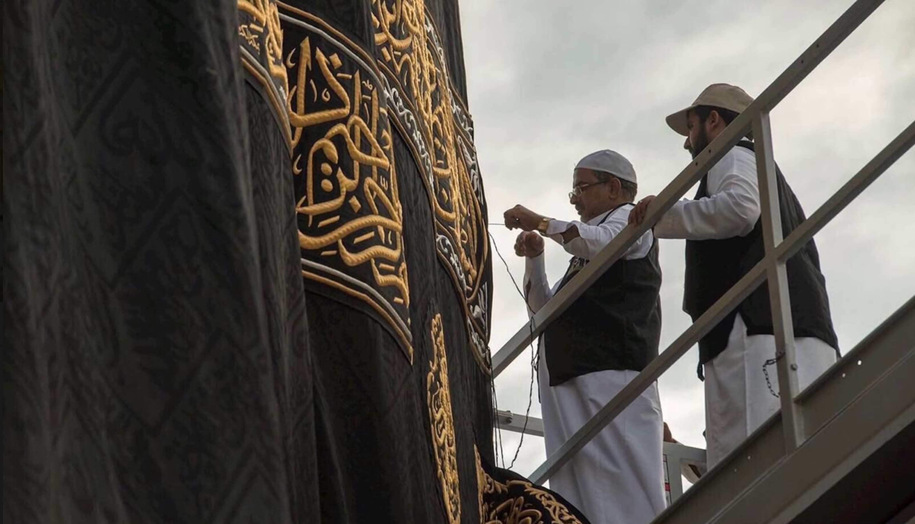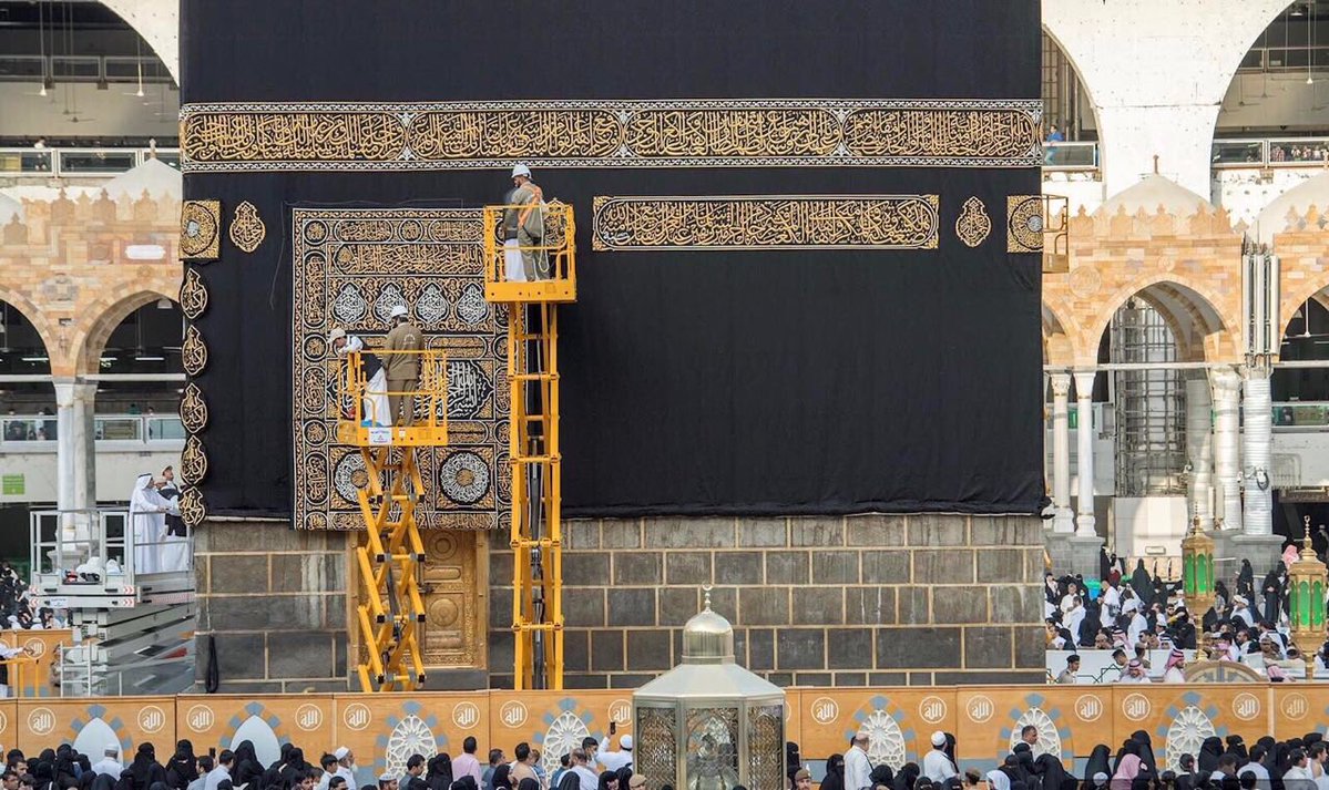 حيث أنه ومع بزوغ فجر يوم عرفة، يتم استبدال كسوة الكعبة الشريفة القديمة بكسوة جديدة.