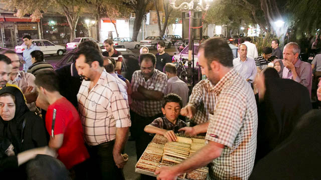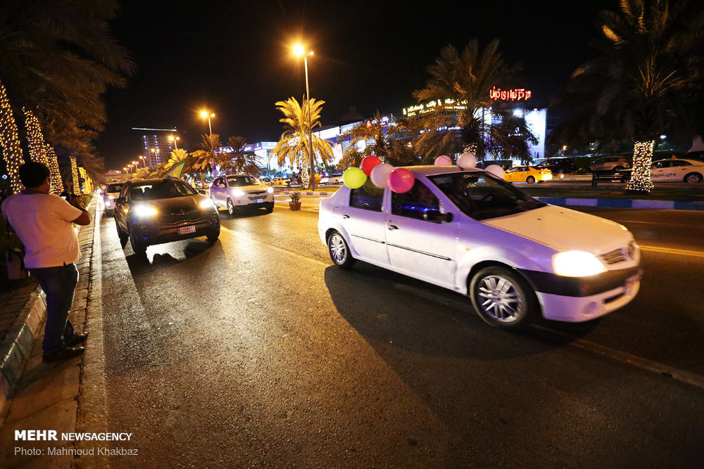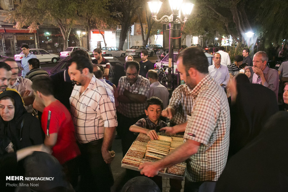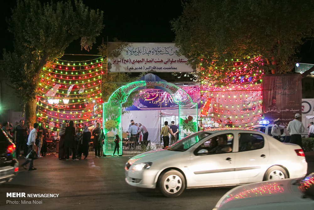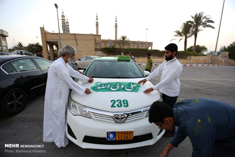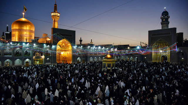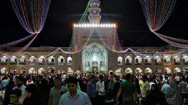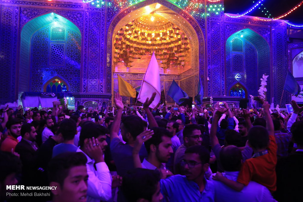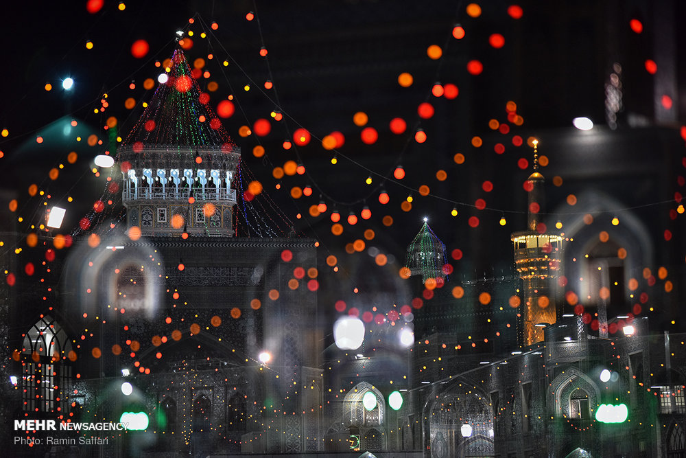 وفي هذا اليوم ترى المساجد والمقامات الشريفة في إيران مثل مقام الإمام الرضا عليه وعلى آبائه أفضل الصلاة والسلام مزينة بأبهى الحلل وأنواع الزينة. والزائرون يتدفقون إليها من كل حدب وصوب، والشوارع مكتظة بالناس والمواقف الخيرية التي يقوم الشباب فيها بتوزيع النذورات من أطعمة وحلويات ومشروبات للمارّين وعابري السبيل تيمنا وفرحا بهذه المناسبة الرغيدة .
