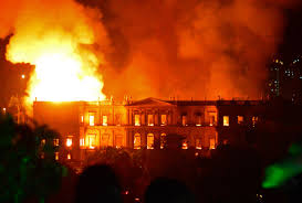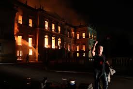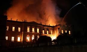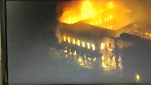 ونشب الحريق في المتحف بعد ساعات الزيارة، وما زالت النيران مشتعلة وبدا أنها تستعر مساء أمس الأحد.