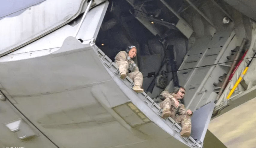 وفي الصور، يبدو رجل عسكري وهو يرتدي نظارة شمسية ويدلي رجليه من مخرج الطائرة، وبجانبه جندية يبدو الابتسام على وجهها، بينما غاب القلق تماما عنهما، رغم خطورة الأمر.
