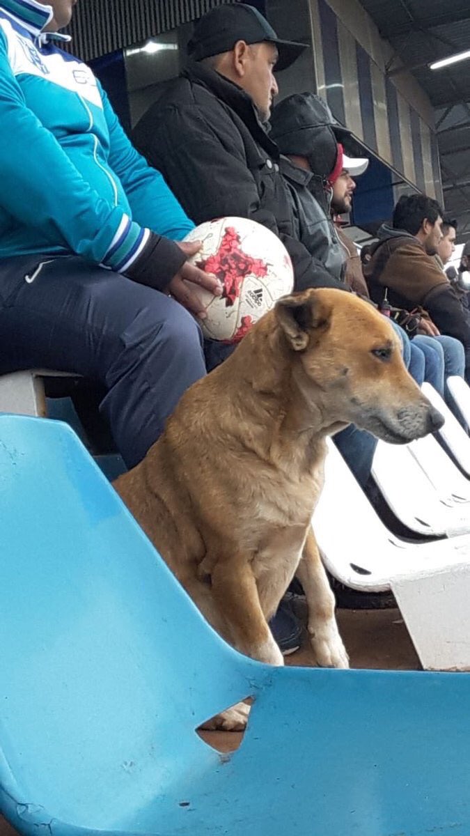 وأضاف المدرب بأن الكلب لايحق له متابعة المباريات على أرض الملعب لذلك لايزال يتابعها من على المدرجات.