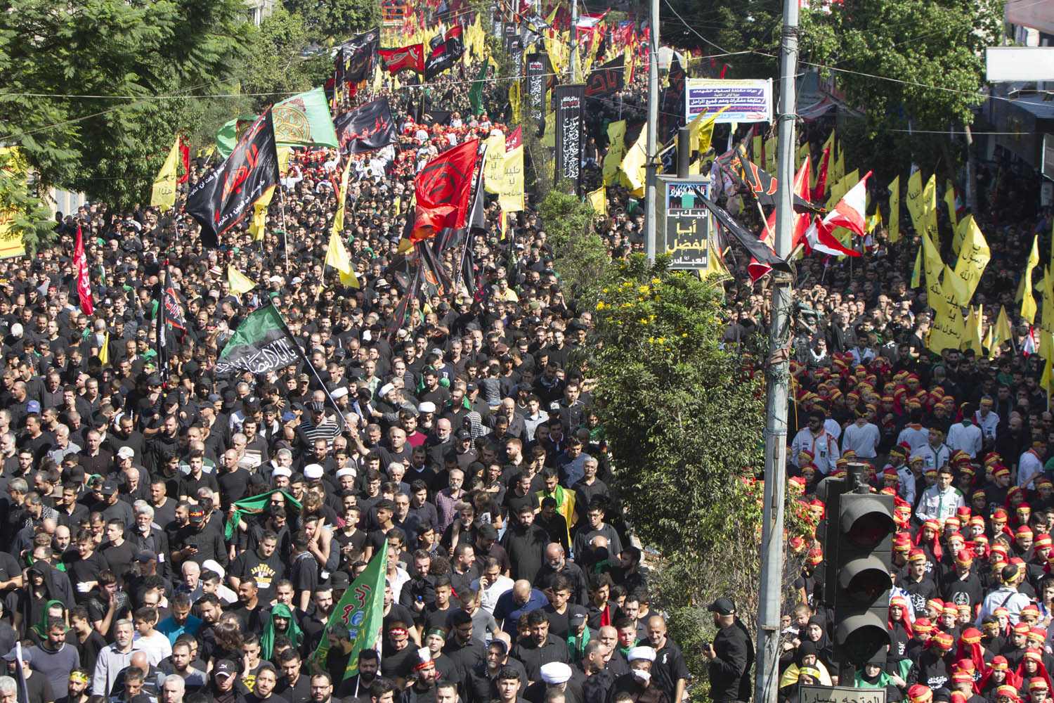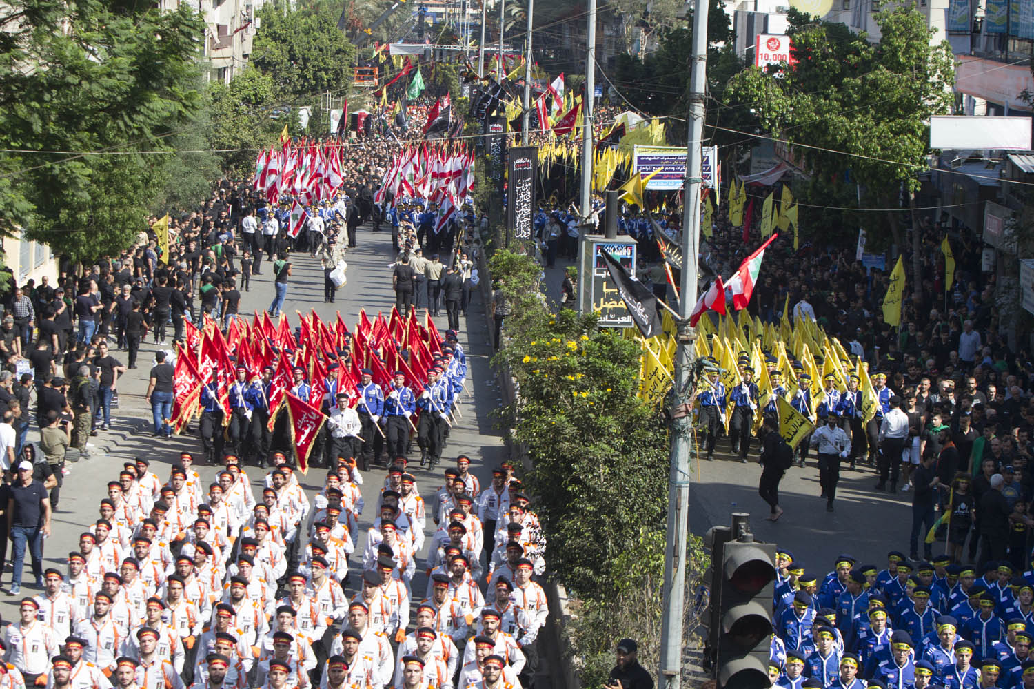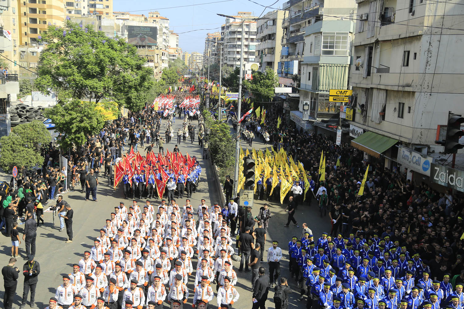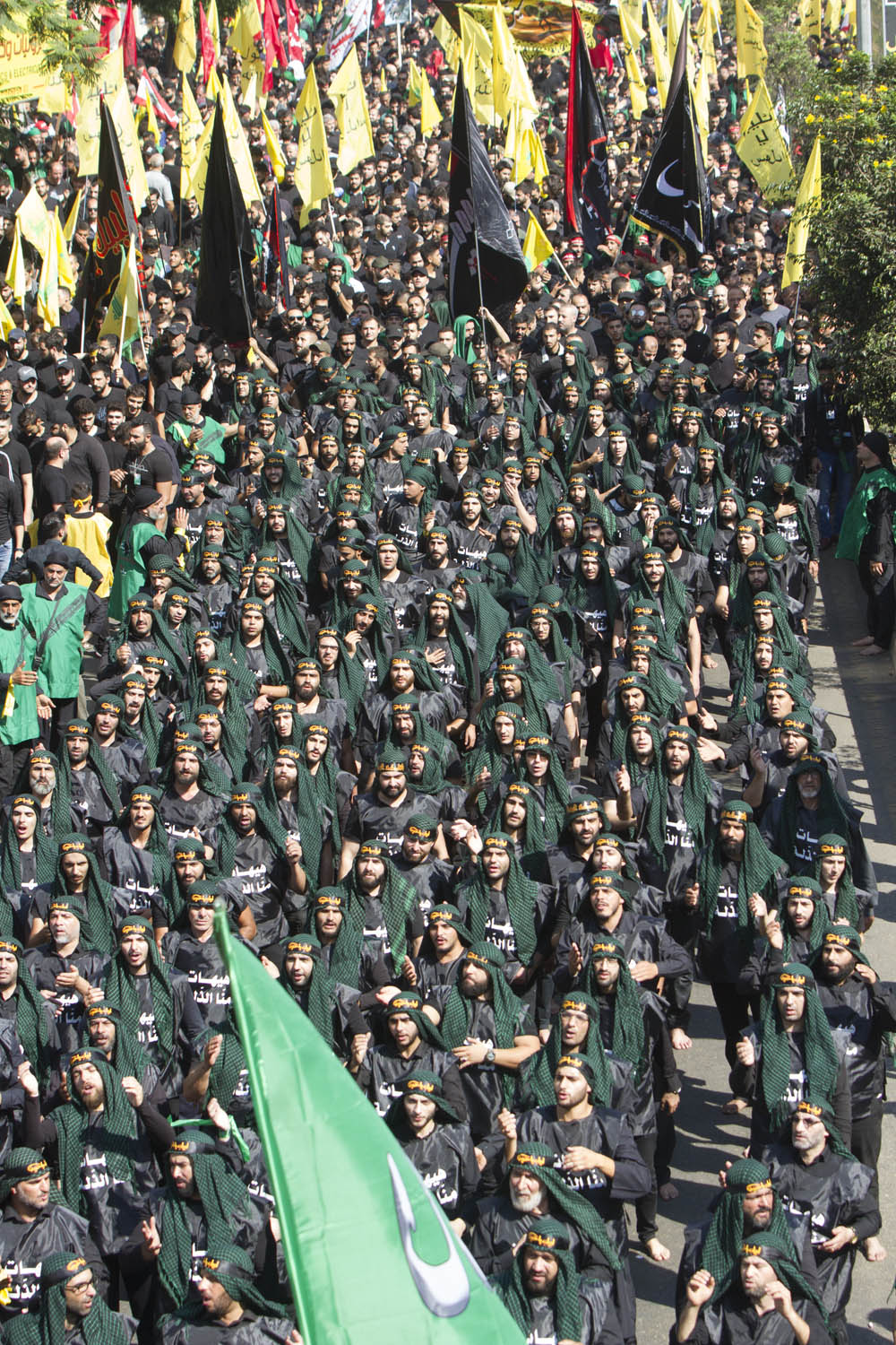 وانطلقت مسيرتان واحدة للرجال من مجمع سيد الشهداء (ع) – الرويس، واخرى للنساء من باحة عاشوراء – الجاموس، حتى تقاطع الكفاءات عند اوتوستراد السيد هادي نصرالله.