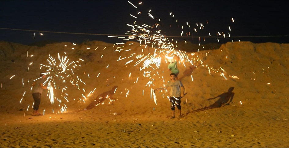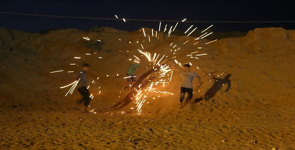 وتجمع عشرات الشبان مساء امس شرق مخيم البريج، وبدؤوا فعاليات الإرباك الليلي بإشعال إطارات السيارات والألعاب النارية وأضواء الليزر، تجاه مواقع الاحتلال.