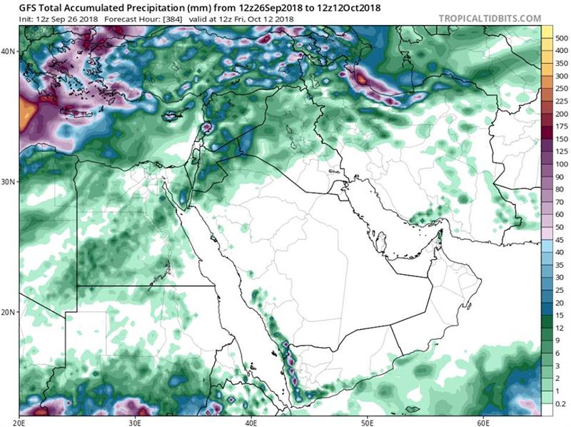 واوضح، ان "الحالة لا تزال غير واضحة بالنسبة للعراق حاليا، ولكن بلاد الشام وشمال السعودية تتعرض الى زخات امطار شديدة احيانا وتستمر الامطار الخفيفة على مصر ايضا، فيما يستمر يوم الاثنين الهطول على غرب وشمال غرب البلاد ويكون خفيف الشدة مصحوب بالبرق والرعد".