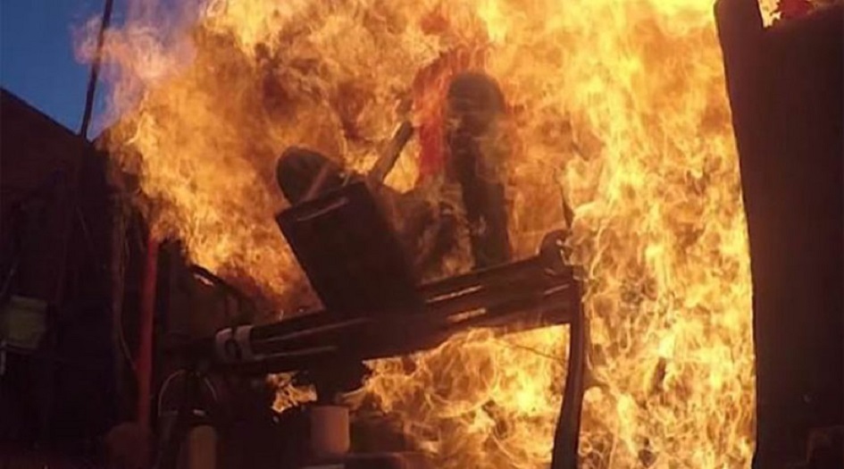 ورصد المقطع تحوال والد الشاب إلى كرة من النار، عقب محاولته التصويب على عبوة كانت بجانب شمعة مشتعلة؛ مما أدّى إلى انفجارها وصعود اللهب نحو الأب الجالس حتى أحرقته.