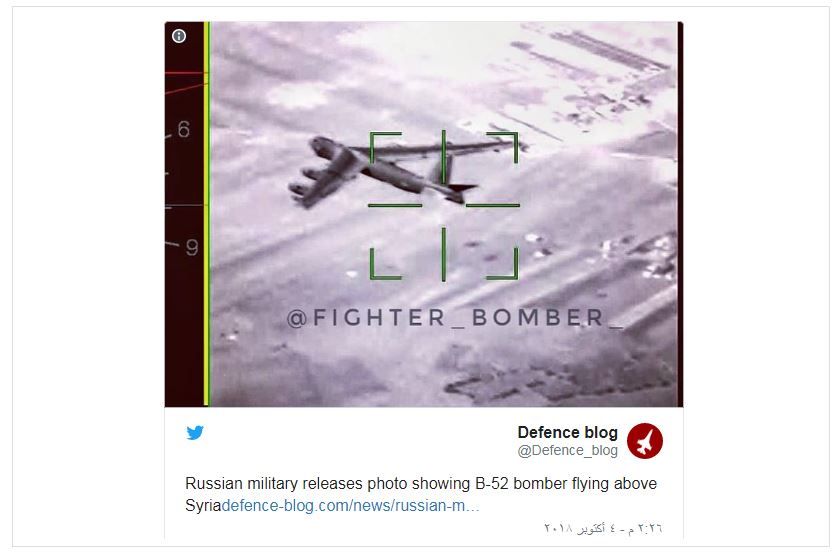 ووفقا لموقع "ديفينس بلوغ"، فإن وزارة الدفاع الروسية نشرت الصورة التي تُظهر تحليق قاذفة القنابل الأميركية "بي-52" في سماء سوريا.
